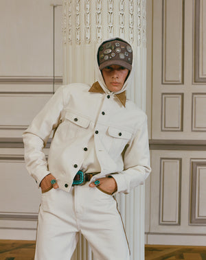 Constructed from Japanese 3×1 broken twill denim, each piece features suede detailing that adds subtle structure and contrast. The program is handcrafted in the United States.